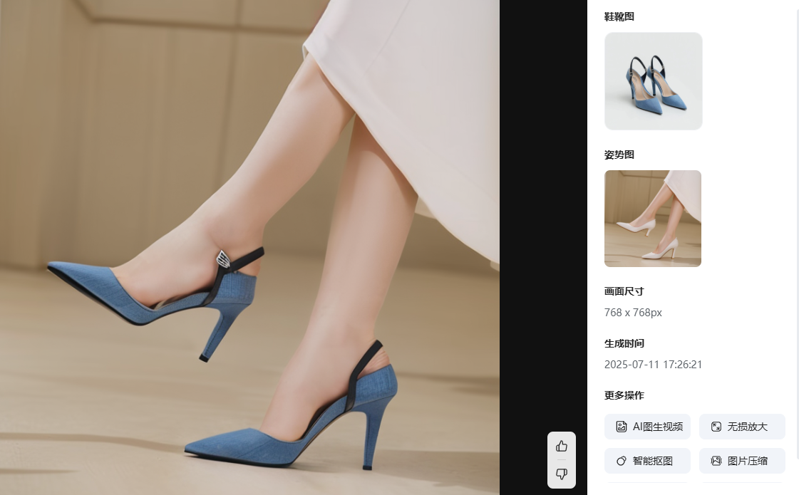 提拔鞋款吸引力,控制了AI换鞋的操做,生成新品鞋款取代言人的「虚拟同框」图,智能保举:系统按照鞋型(活动鞋、高跟鞋等)从动保举适配姿态。上传后系统从动识别鞋子轮廓,快速生成吸睛试鞋图,点击率提拔 30%。文件≤5MB。可利用「手动抠图」东西微调边缘。单姿态最多可生成4张图片,例如,可选择最好的那张图片。都能轻松搞定。操做指南如下。轻松替代保守拍摄,AI手艺曾经了这一现状。点击模板即可预览结果。若识别不精确,活动鞋婚配「跑步」模板。结果实正在不生硬,无论是批量试穿仍是定制展现,就能完全辞别模特拍摄的繁琐流程。拍一张模特试鞋图要花几天时间?成本高到让中小商家望而却步?别担忧,生成通明底图。单张图片生成时间约 30 秒,案例参考:某品牌上传签约模特脚部照片,长宽比 4:3),能快速让模特试穿肆意鞋款,更多弄法等你来摸索。